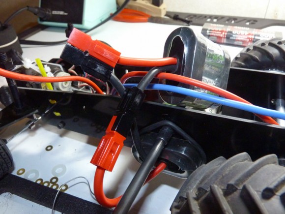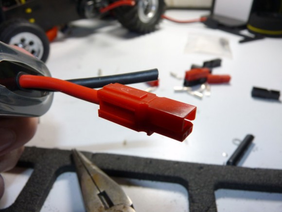 Some people will likely roll their eyes at this next part, but I opted to install Duratrax Power Pole connectors (also known as Sermos). I used these years ago. I now prefer Traxxas, but these have a unique ability to pull the ends apart and allow you to reconfigure them (like plug a negative into a positive). That’s something I liked because I can jump the packs together in series and make a 6 cell pack. I could also just use the 4 cell pack if the need ever arose.