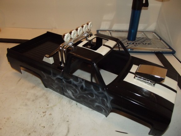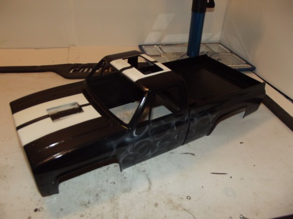 We went back to Stay Hard Graphix for this one, after the stellar job they did on the Project Puller body. I LOVE the old school racing stripes, and white flames!