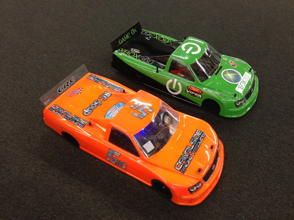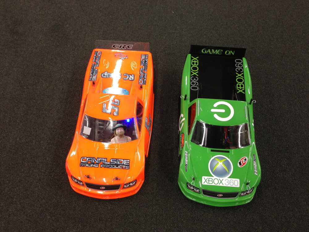 Here it is with the body on next to fellow Team Soup / Canalside Racing driver Jarodd Goedel’s CRC Gen X10LE Oval Conversion (the orange one is his).