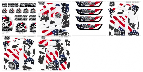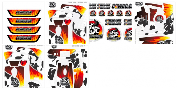 Recently CowRC released 5 new themed lines. Below are samples each individual style of Mat Header, Decal Set, and Radio Skinz themes. All Mats, decals, & DX3r, Dx3r pro, 4PK and 4PL skinz are in stock with many more radio models coming every 3-4 weeks for the next few months… For more information on these or other products go to www.cowrc.com